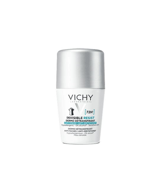 - Le déodorant anti-transpirant Vichy Invisible Resist 72 h a été développé spécialement pour les femmes. Il offre une action efficace contre l’humidité et les odeurs, et une tolérance optimale grâce à sa formule hypoallergénique et sans alcool, testée sur les peaux sensibles pour une protection et des effets anti-irritation. Il garantit une grande action anti-transpirante pendant maximum 72heures, avec un parfum durable, sans laisser de traces. La technologie Invisi-Lock, approuvée par l’IFTH (Institut Français du Textile et de l’Habillement), permet de ne laisser aucune trace jaune sur les tissus clairs et aucune trace blanche sur les tissus foncés, et évite que le déodorant laisse des résidus qui pourraient tacher les vêtements. Sa texture non grasse et non collante rend le déodorant agréable à porter. Les bénéfices de cette technologie avancée unique et cliniquement prouvée ont été approuvés par 90% des consommateurs, qui s’accordent à dire que ce dermo-transpirant est efficace contre les odeurs et l’humidité.