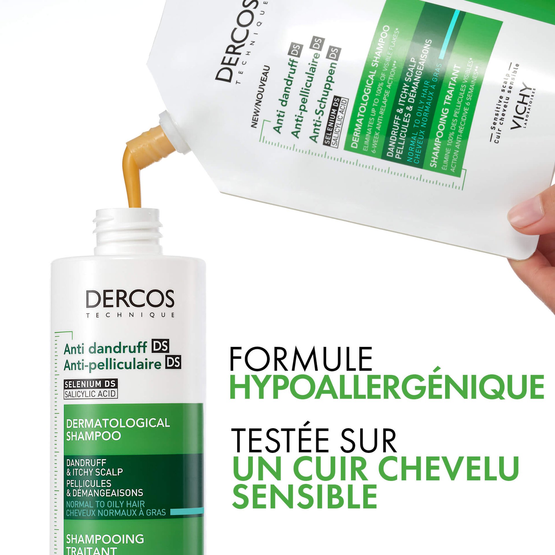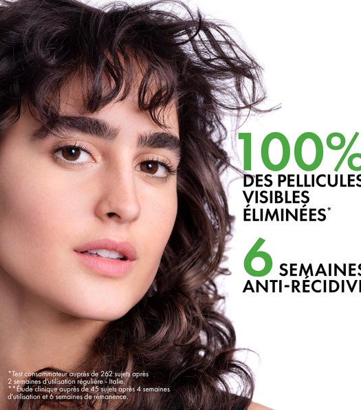 Élimine jusqu’à 100 % des pellicules visibles, avec une efficacité anti-rechute pendant 6 semaines.