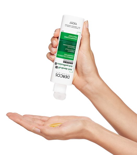 Routine conseillée par les dermatologues : appliquez le shampoing sur les cheveux et le cuir chevelu mouillés. Laissez le shampoing agir pendant 2 minutes, massez et rincez.