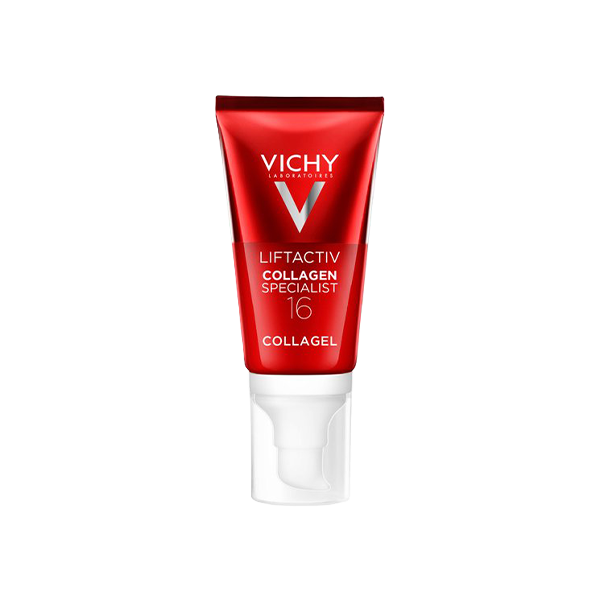 - Le Liftactiv Collagen Specialist 16 Glow Boosting Gel de Vichy est le premier gel à la texture invisible qui utilise la technologie Co-Bonding pour stimuler et lier toutes les familles de collagène. Il réduit 16 signes du vieillissement cutané et rend votre peau éclatante. Convient aux peaux sensibles, invisible sur toutes les carnations. Ce gel au fini sec corrige 16 signes du vieillissement cutané : éclat, hydratation 24 heures, volume, vitalité, élasticité de la peau, ridules, fermeté, souplesse, texture de la peau, resserrement des pores, régulation du sébum, tonicité et douceur.