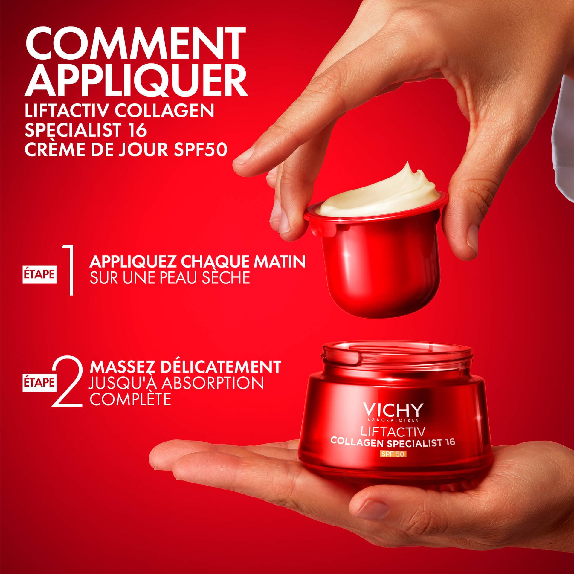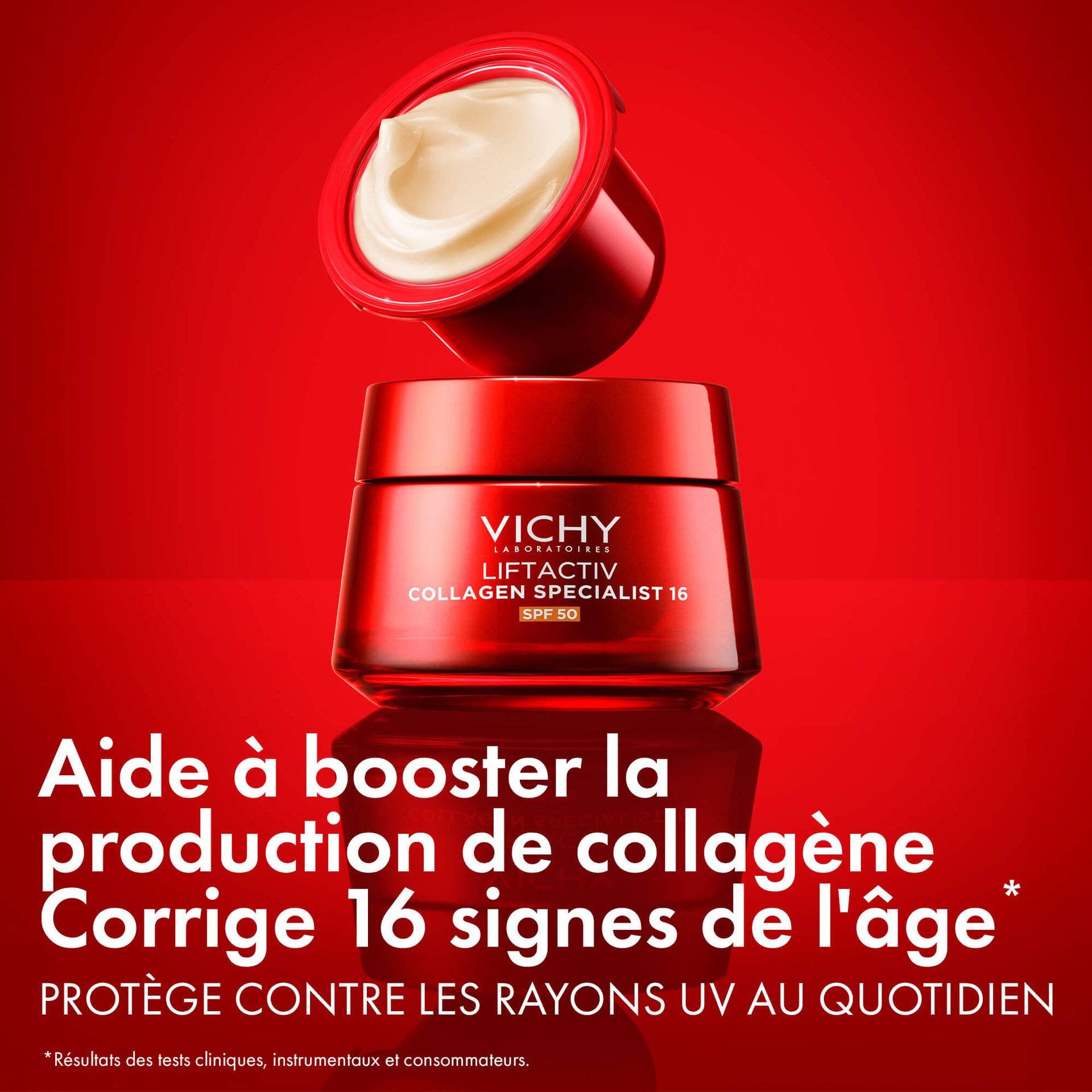 Vichy Collagen Specialist 16 est formulé avec notre technologie Co-Bonding exclusive, une puissante synergie composée de rhamnose, de peptides et de Maïtaké. Ce trio dynamique travaille en parfaite harmonie pour revitaliser votre peau. Le rhamnose, un sucre végétal, stimule la production de collagène de manière efficace. Les peptides, connus pour renforcer la peau, aident à renforcer l’élasticité et la fermeté naturelles de votre peau. Enfin, le Maïtaké, un puissant extrait de champignon, apporte une protection antioxydante cruciale, protégeant votre peau du vieillissement cutané précoce dû aux agresseurs environnementaux.