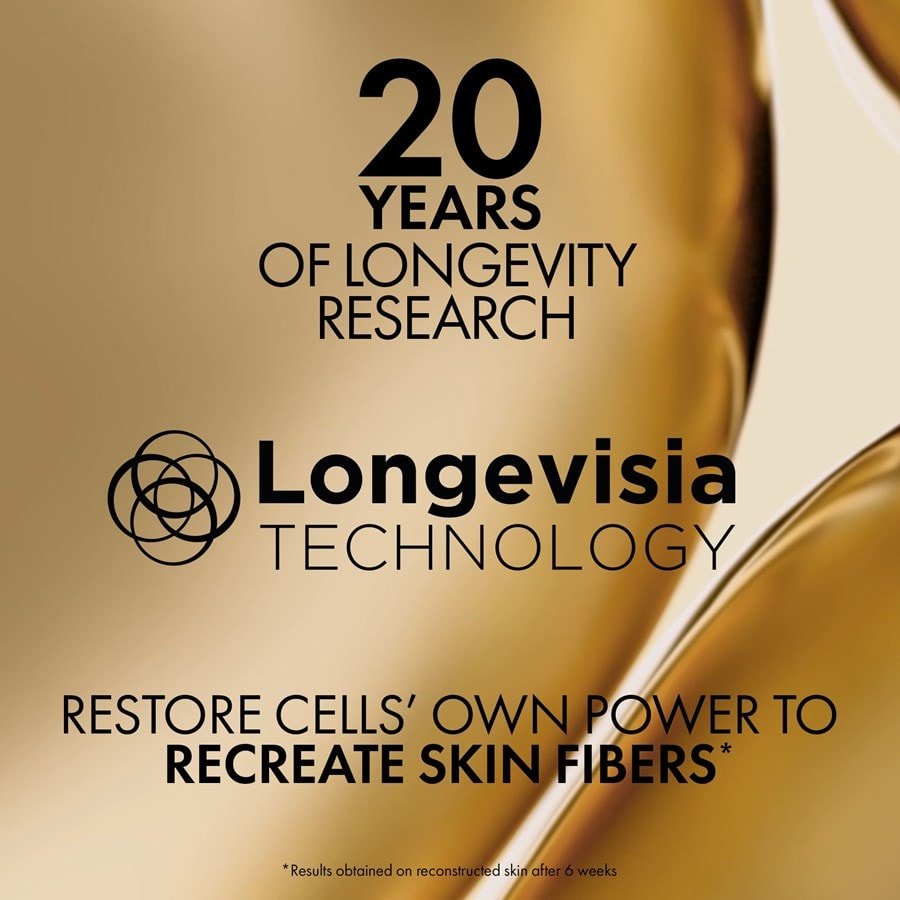 S’appuyant sur plus de 20 ans de recherche scientifique sur la longévité et 30 ans d’expertise en matière de peau mature, la technologie révolutionnaire Longevisia restaure le pouvoir régénérateur des cellules en offrant jusqu'à 42% plus de volume*