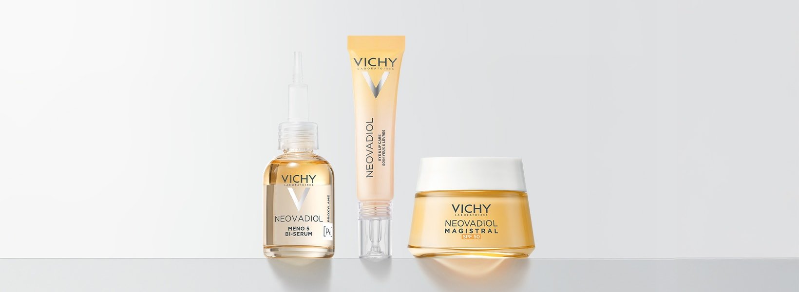 Het Neovadiol Meno 5 Bi-Serum heractiveert werkingsmechanismen van de huid tijdens en na de menopauze met een zichtbare impact op de volgende factoren: ouderdomsvlekken, verslapping, dichtheid, rimpels, dofheid.