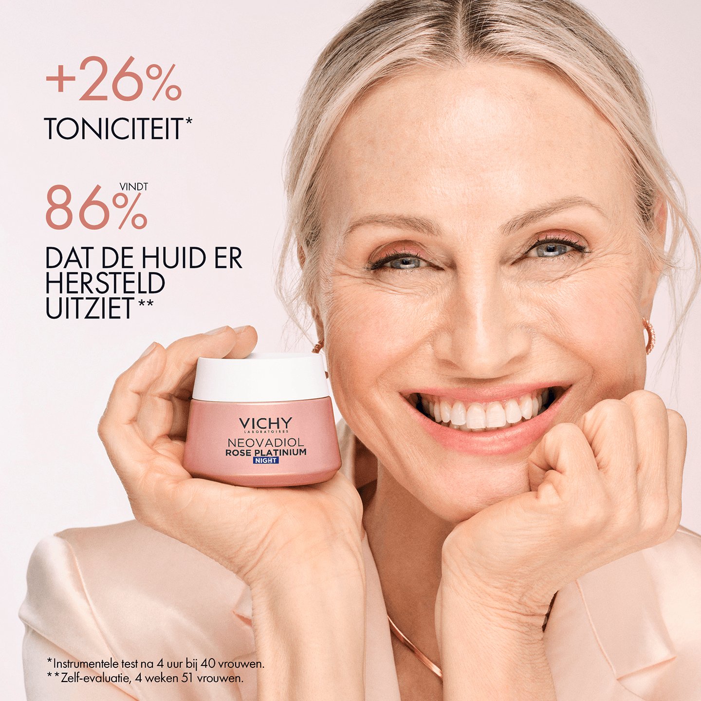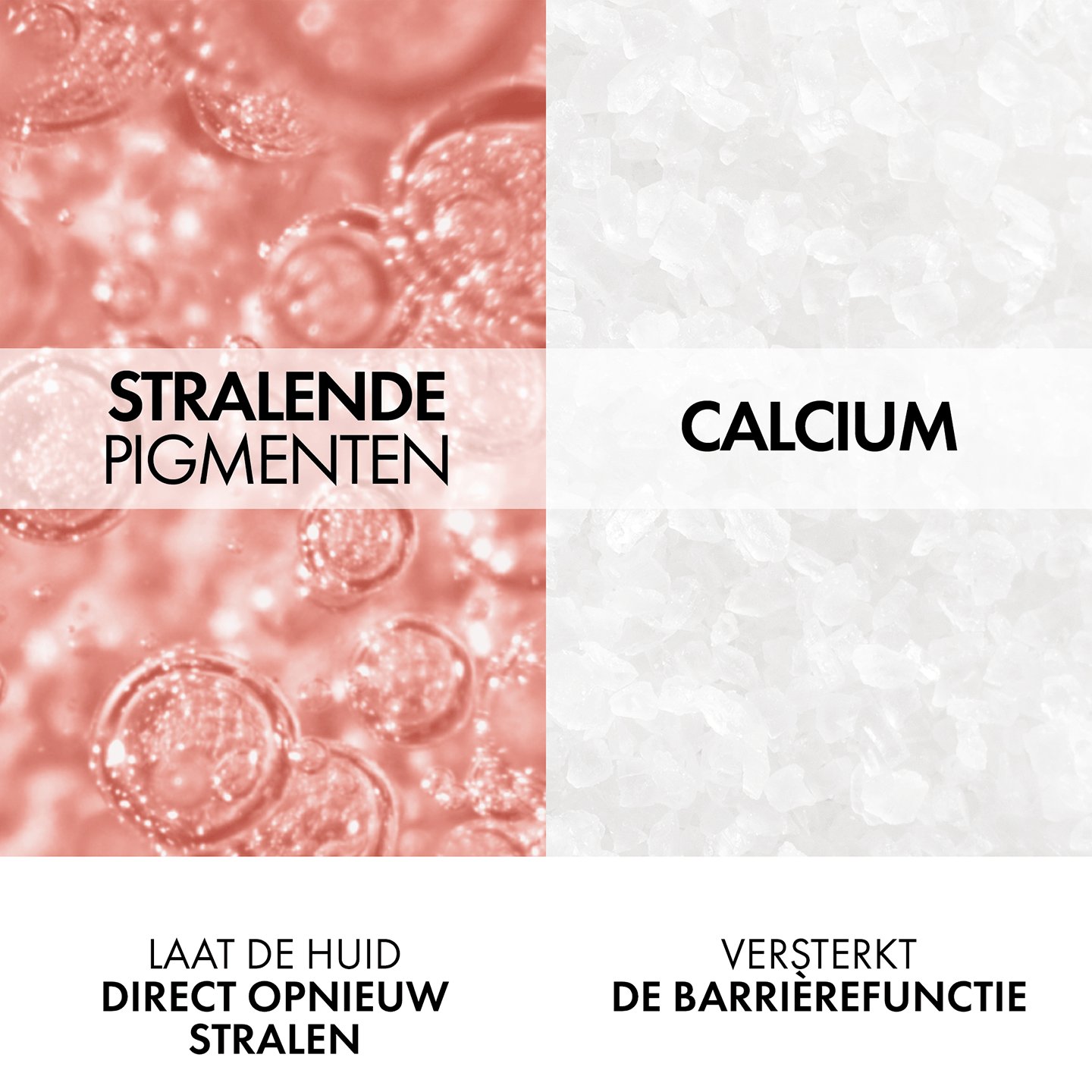 • Deze voedende en revitaliserende nachtcreme met roze pigmenten is ontwikkeld om wallen te verminderen en fijne lijntjes te vervagen. Het is geformuleerd met Cafeïne tegen zwelling, verstevigend Calcium en het versterkend Vulkanisch Water van Vichy. Rimpels zijn verminderd, voor een jeugdigere oogopslag.